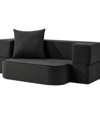 Bean Bag Bed Tufted Folding Sofa Bed with Pillows Floor Mattress for Adults, Extra Thick and Long Floor Sofa, Twin Floor Couch Bed for Bedroom Living Room, Beige, 39x91 Inch