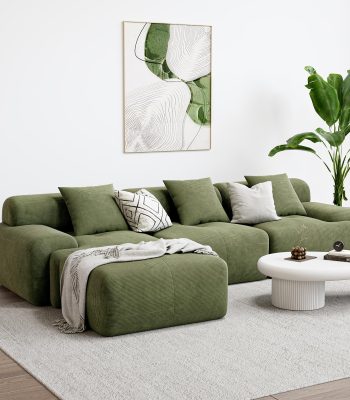118" Modern L-Shaped Modular Sectional Sofa for Living Room, Corduroy Upholstery Green, Oversized 3-Seater Couch with Deep Seat and Movable Ottoman – No Assembly
