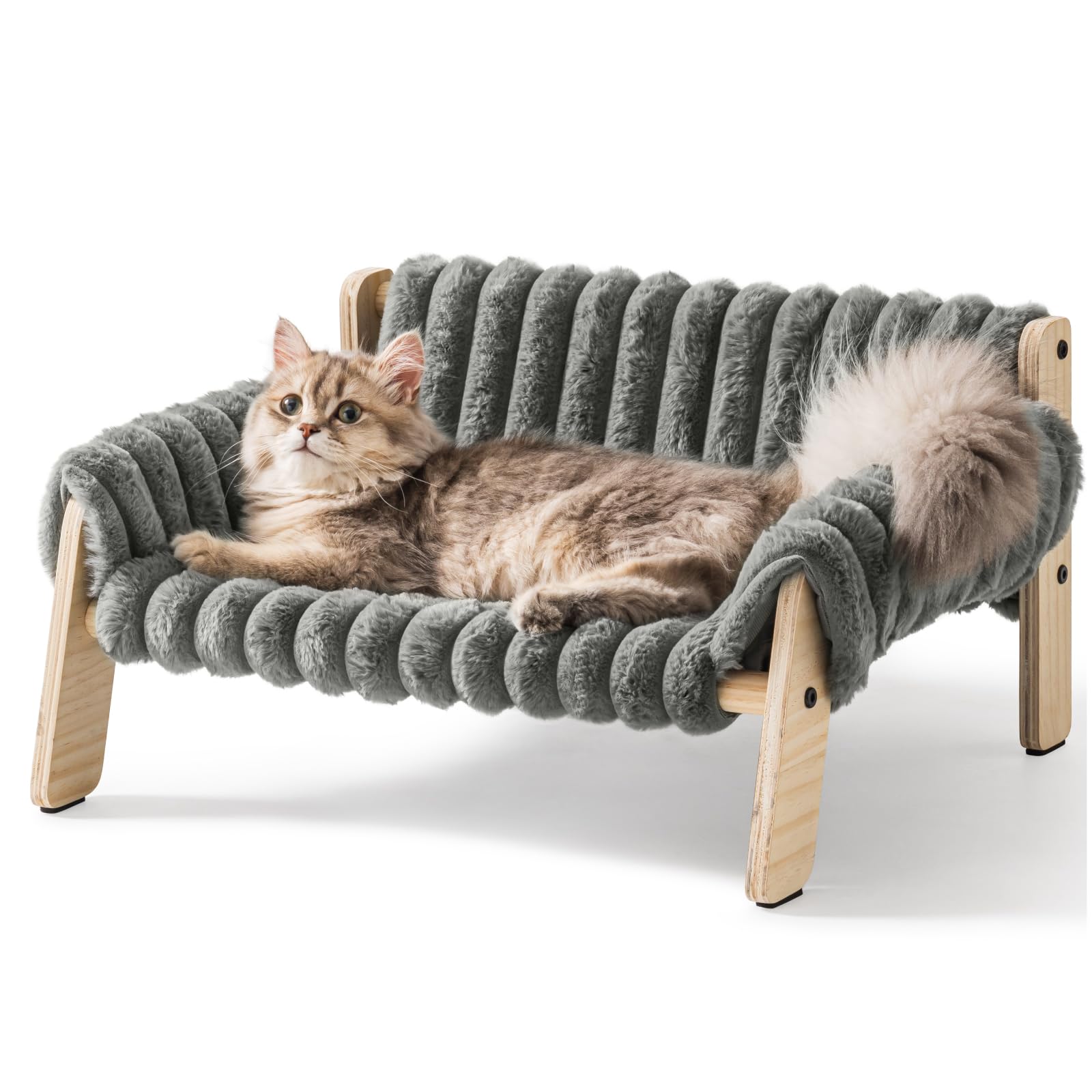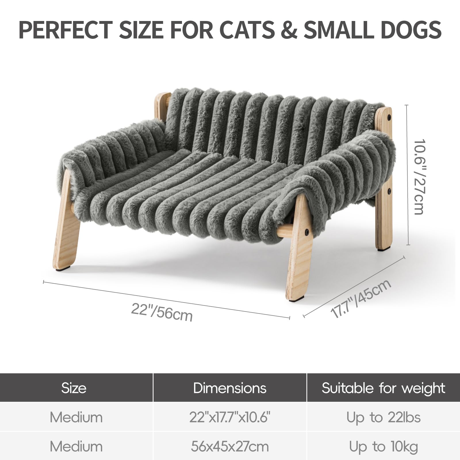 Cat Couch Bed, Pet Sofa for Indoor Cats Wooden Indoor Elevated Cat Beds with Removable Mattress Cover Suitable for Kitty, Puppy or Small Animal (Dark Grey, Medium)
