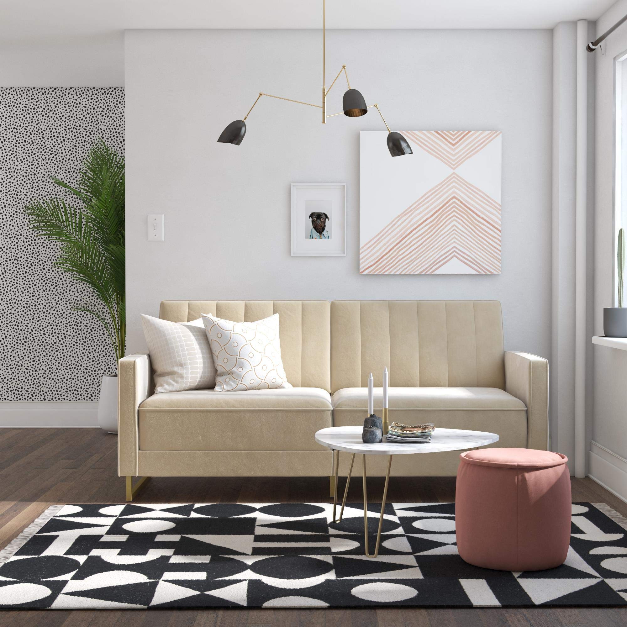 • Modern design with rich velvet fabric, and ribbed tufted cushions, create a stylish look for your velvet futon that can also be used as a small couch for your bedroom